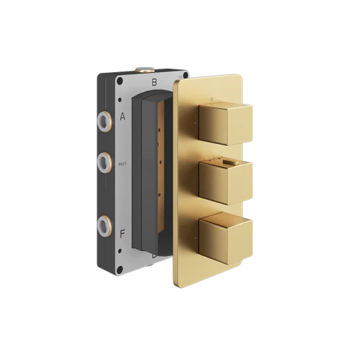 Abacus EZ Box 3.0 Thermostatic Shower Valve 3 Way Brushed Brass Square Handles