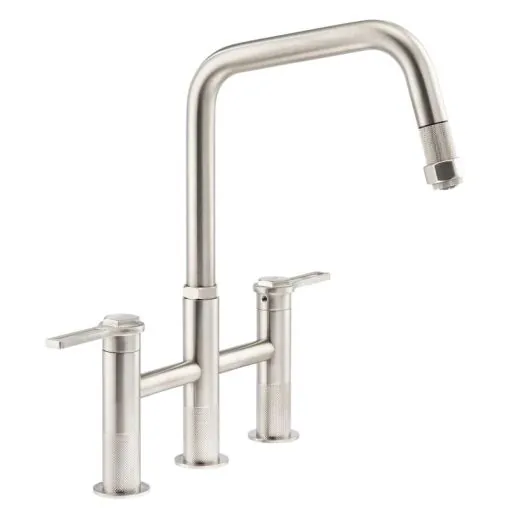 Abode Hex Bridge Kitchen mixer Tap with Pull Out spray Brushed Nickel