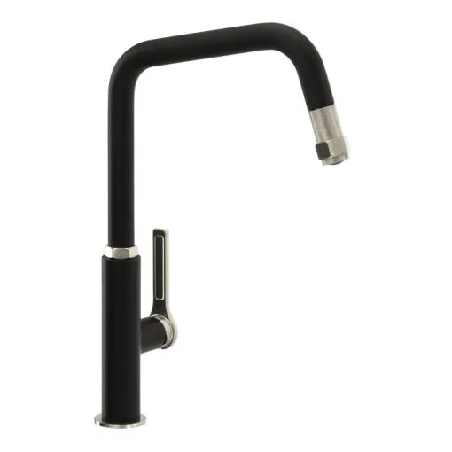 Abode Hex Single Lever Kitchen mixer Tap with Pull-Out spray Brushed Nickel / Black