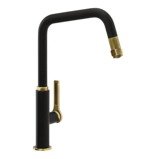 Abode Hex Single Lever Kitchen mixer Tap with Pull Out spray Matt Black & Antique Brass