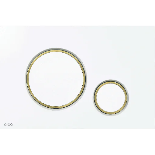 Elevate the design of your bathroom with the Alca Thin Flush Plate (Round) in White & Gold, adding a touch of luxury and refinement to your space. Upgrade your bathroom with this elegant Flush Plate for a stunning and functional finishing touch.