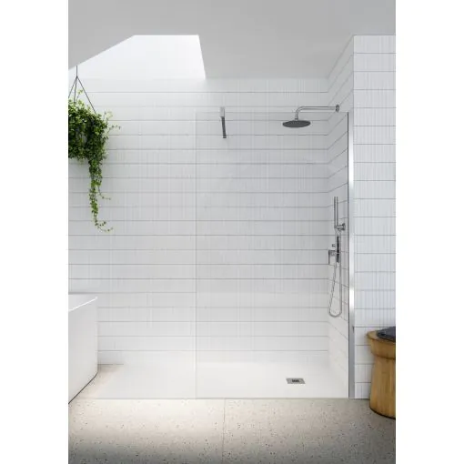 This modern yet simple shower enclosure is available in a range of sizes to be optimised to any space, and has the option for a chrome, matt black or brushed brass wall profile and stabilising bar. This Armano design can be fitted to the floor or tray and the 8mm tempered glass panel features Brillo Vetro protection which makes it easier to clean and enhances resistance to build up of soap and water deposits. A perfect option for a walk-in shower design, you can also find it in a grey glass option.