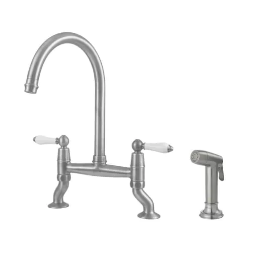 Clearwater Elegance Bridge with Rinse Kitchen mixer Tap Brushed Nickel