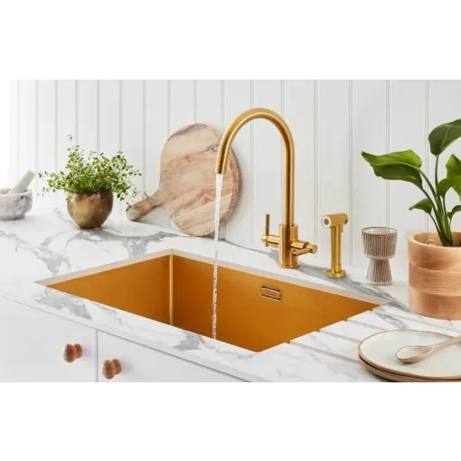 Clearwater Rococo Mono Kitchen mixer Tap with Rinse Artisan Brass
