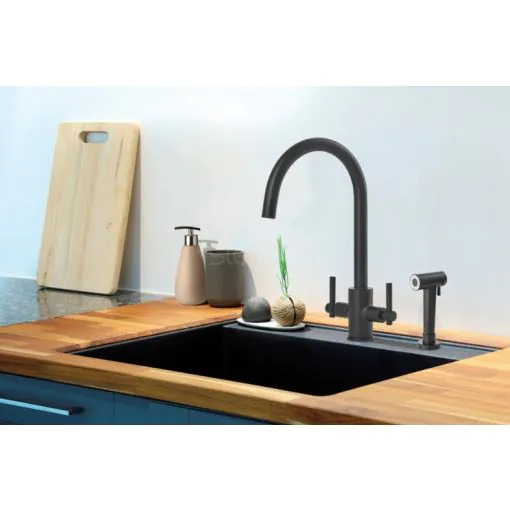 Clearwater Rococo Mono Kitchen mixer Tap with Rinse Matt Black