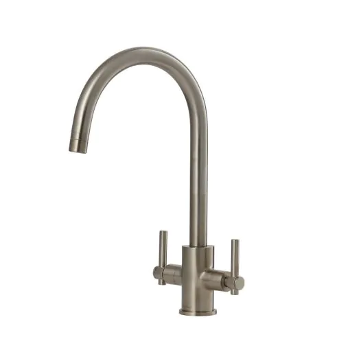 Clearwater Rococo Twin Lever Kitchen mixer Tap Brushed Nickel