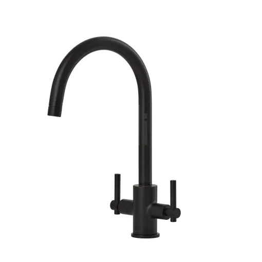 Clearwater Rococo Twin Lever Kitchen mixer Tap Matt Black