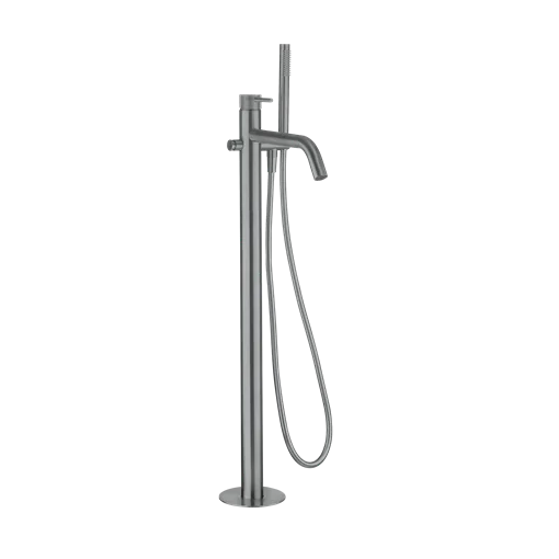 A floor mounted bath shower mixer is specifically designed for use with freestanding bathtubs. It is installed on the floor next to the tub, eliminating the need for wall or deck-mounted installation.