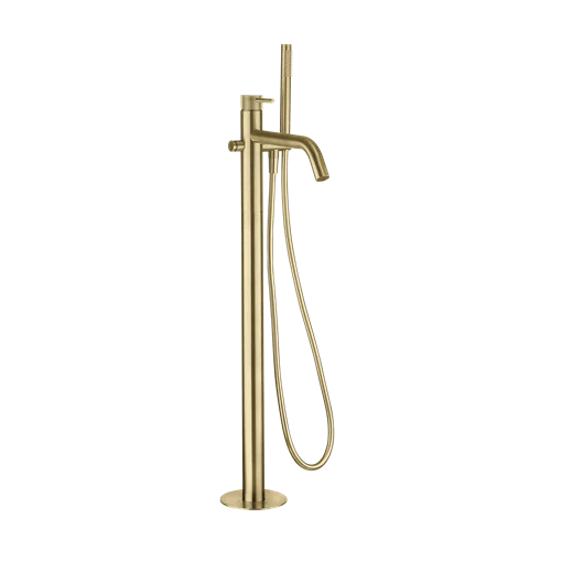 A floor mounted bath shower mixer is specifically designed for use with freestanding bathtubs. It is installed on the floor next to the tub, eliminating the need for wall or deck-mounted installation.