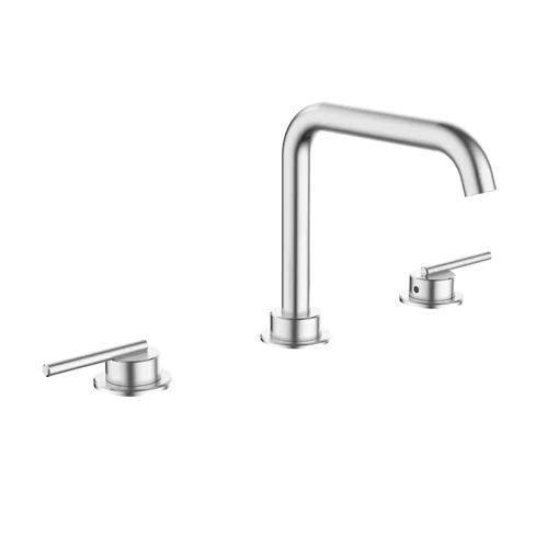 The deck mounted 3-hole basin mixer features separate handles or levers for controlling hot and cold water respectively. These handles are installed on either side of the spout and allow independent control of each water supply.