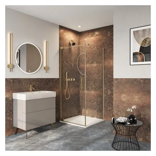 Crosswater Asura 8mm Hinged Door (Width 1000mm) with Side Panel 900mm And Hammered Handle-Brushed Brass