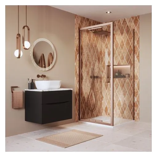 Crosswater Asura 8mm Infold Door(900mm) with 800mm Side Panel and Hammered Handle-Brushed Bronze