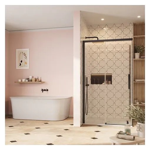 Crosswater Asura 8mm Sliding Door (width 1200mm) with Side Panel 800mm and Hammered Handle-Matt Black
