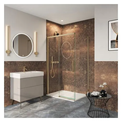 Crosswater Asura 8mm Sliding Door (Width 1400mm) with Side Panel 800mm And Fluted Handle-Brushed Brass