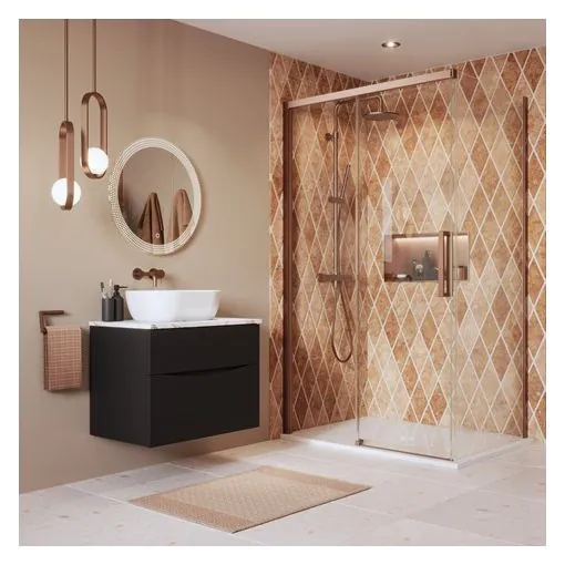 Crosswater Asura 8mm Sliding Door with 800mm Side Panel Fluted Handle-Brushed Bronze