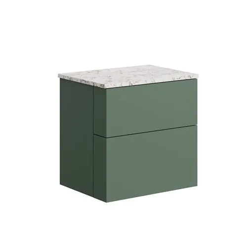 Crosswater Avenue 600 Two drawer Wall Hung Vanity Sage Green with Gold Vein Worktop