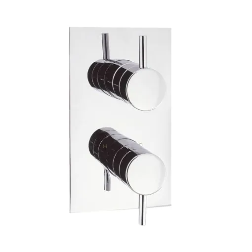 • Two controls: 1. Water control with diverter for two separate shower outlets, 2. Controls your temperature