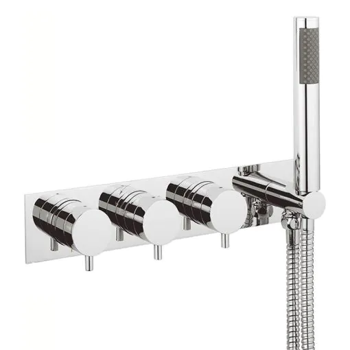 3 Controls - 1st: Operates 1 shower outlet with diverter, 2nd: Controls temperature, 3rd: Operates the shower handset supplied, can be used separately or at the same time