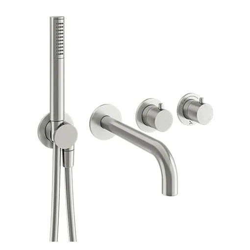 Crosswater Module 2 Outlet 2 Handle Shower Valve, Bath Spout & Handset Brushed Stainless Steel