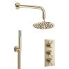 Crosswater MPRO Push 2 Outlet 3 Handle Trimset and Handset-Brushed Brass
