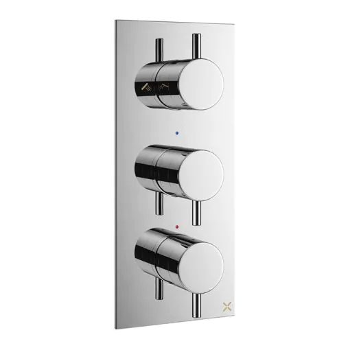 Introducing the Crosswater MPRO Chrome 3 Outlet 3 Handle Trimset Concealed Thermostatic Valve Portrait, a premium shower accessory that combines luxurious design with exceptional functionality. This sleek and modern trimset from the reputable manufacturer Crosswater is the perfect addition to any contemporary bathroom.