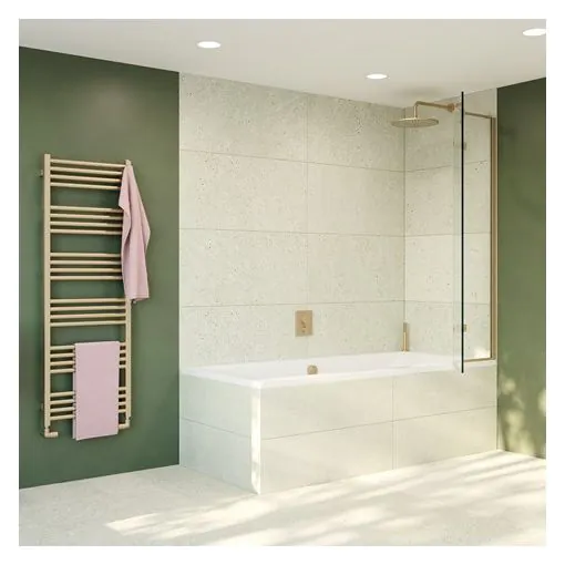 Introducing the Crosswater Optix Hinged Bath Screen 90° 900x1500 Brush Brass Right, a luxurious and stylish addition to any bathroom. This high-quality bath screen from Crosswater combines functionality with a modern design, perfect for creating a sleek and sophisticated look in your bathroom.
