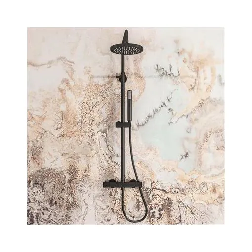 Eastbrook Meriden Round Thermostatic Telescopic Shower Set with Bar Valve - Matt Black