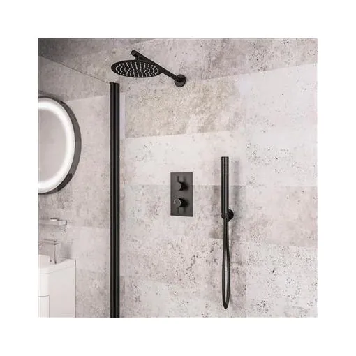 Eastbrook Round Thermostatic Shower Bundle with Shower Head, Valve & Handset - Matt Black