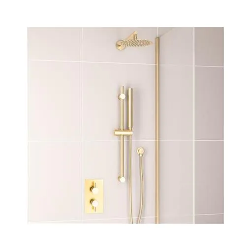 Eastbrook Round Thermostatic Shower Bundle with Shower Head, Valve, Round Riser Kit & Handset - Brushed Brass