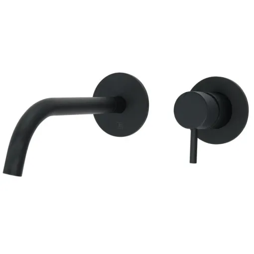 Just Taps Vos Wall Mounted Single Lever Designer Handle Basin Mixer Tap with Slim Spout 150mm-Matt Black