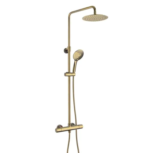 Just Tap VOS Thermostatic bar valve with 2 outlets, adjustable riser and shower kit Cool Touch Brushed Brass