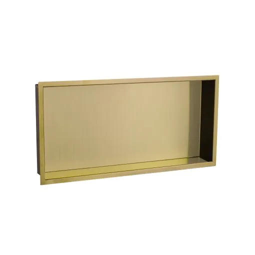 Just Taps Vos Rectangular Wall Mounted Shower Niche 600mm x 300mm-Brushed Brass
