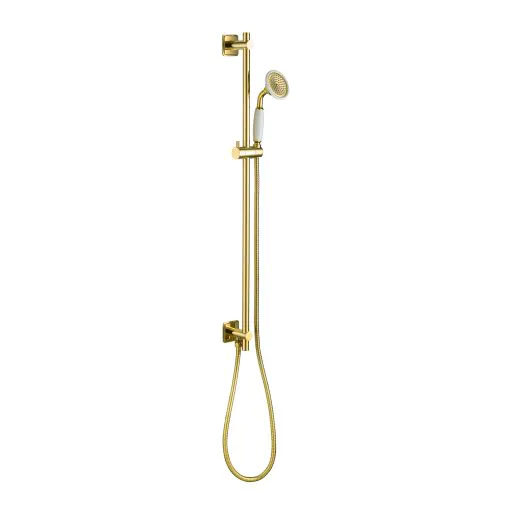 Just Taps Grosvenor Cross Antique Brass Edition Slide Rail Kit, Single Function Handset, Hose