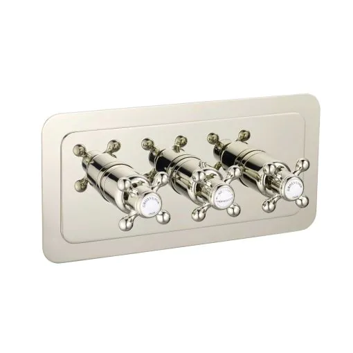 Just Taps Grosvenor Cross Thermostatic 2-Outlets Concealed Shower Valve-Nickel-160mm