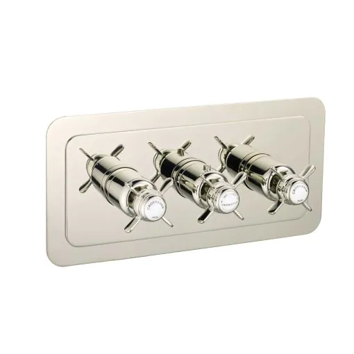 Just Taps Grosvenor Pinch Thermostatic 3 Outlet Concealed Shower Valve-Nickel-160mm