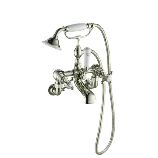 Just Taps Grosvenor Wall Mounted Bath Shower Mixer Tap with Shower Kit-Nickel