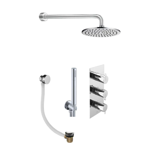 KIO 3 outlet shower valve, arm 300mm, overhead shower 200mm, water outlet and holder, exofil click clack