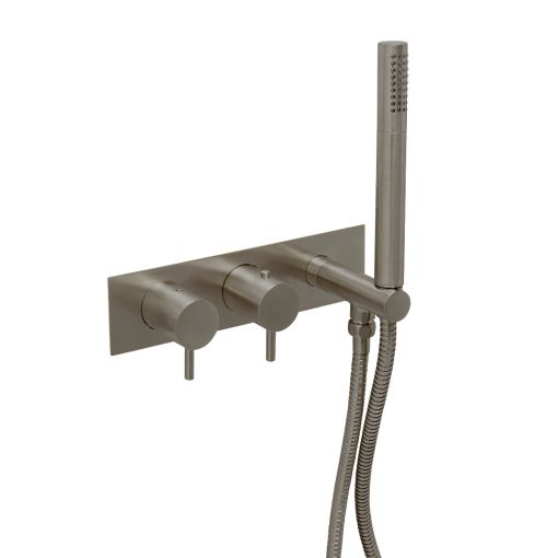 Just Taps VOS Brushed Black Thermostatic Concealed 2 Outlet Shower Valve With Attached Handset