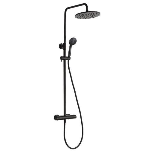 Just Taps Vos Thermostatic Bar Valve with 2 Outlets, Adjustable Riser and Multifunction Shower Handle-Matt Black