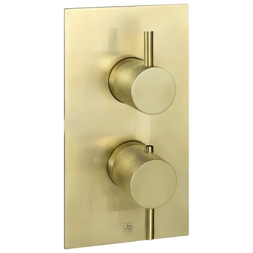 Just Taps Vos Thermostatic Concealed 1-Outlet Shower Valve with Designer Handle-Brushed Brass
