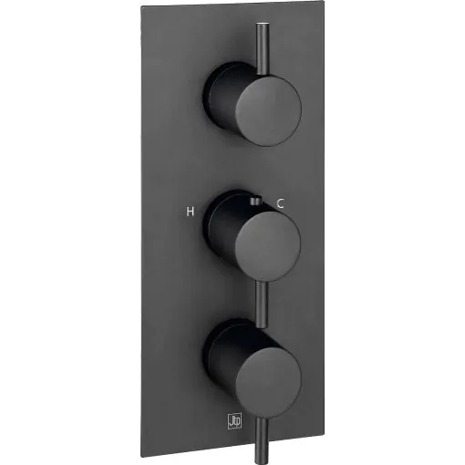 Just Taps VOS Vertical Thermostatic Concealed 3 Outlet Shower Valve-Matt Black