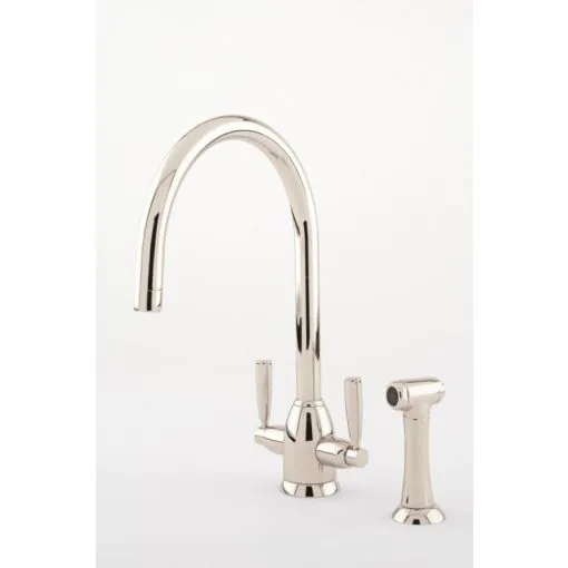 Perrin & Rowe Langbourn 'C' Spout with rinse Kitchen mixer Tap Polished Nickel (Oberon)