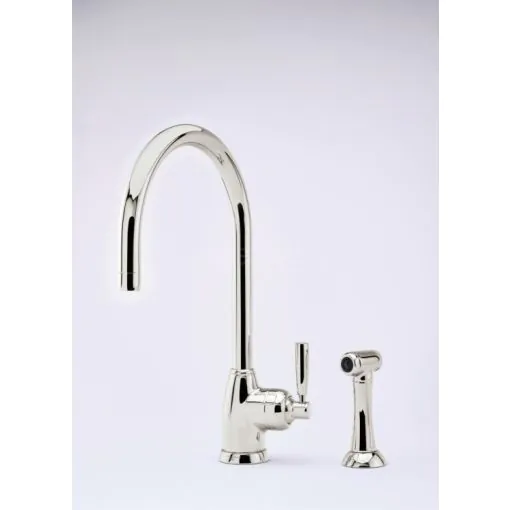 Perrin & Rowe Langbourn 'C' Spout with rinse Kitchen mixer Tap Polished Nickel