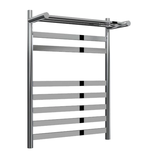 The Alento Towel Radiator seamlessly blends modern functionality with elegance, featuring an integrated towel shelf and a sophisticated design that incorporates both square and circular elements. Constructed from high-quality stainless steel with a sleek polished finish, it provides outstanding heat distribution and is backed by a 25-year warranty, making it a dependable option for any bathroom.