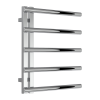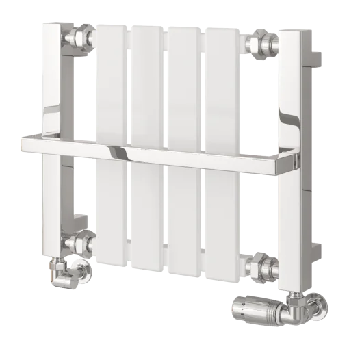 The Reina Ashen 1000H x 490W is a compact designer towel radiator featuring four vertical sections and three chrome heated bars, available in either a chrome with white finish or chrome with textured black. Crafted from durable steel, it provides superb heat output and includes integral horizontal towel bars, all backed by a 5-year guarantee.