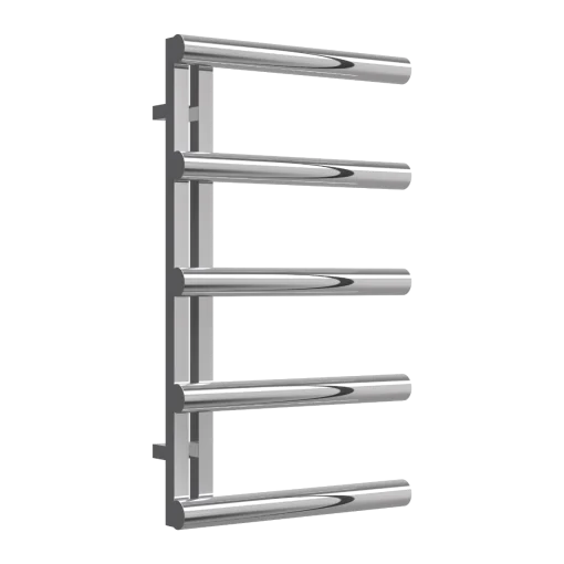 The Grosso Towel Radiator features a modern offset ladder design with horizontal round tubes, crafted from high-quality stainless steel and finished to a polished shine. Its reversible design allows for versatile installation, while exceptional heat output and a 25-year guarantee ensure lasting performance and style in any space.