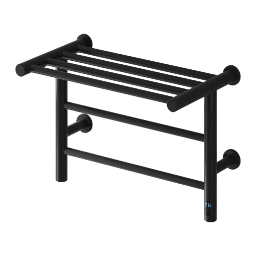 The Maira Dry Electric Heated Towel Rail, crafted from premium stainless steel, features an integrated towel shelf, concealed wiring, and a discreet bottom-right control panel. With dry electric technology and a timer function offering 2, 4, and 24-hour settings, it delivers excellent heat output and sleek, efficient functionality.