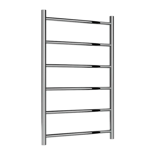 The Savio Towel Radiator features a modern ladder design with round horizontal tubes crafted from high-quality stainless steel and finished to a brilliant polish. With excellent heat output and a 25-year guarantee, it combines style and durability for a reliable heating solution.