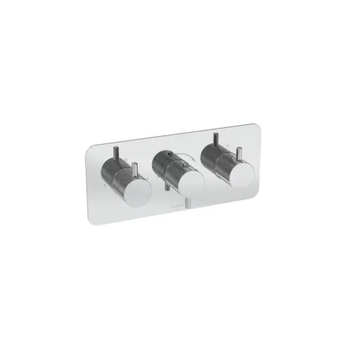 Saneux COS 2 Way 3 Handle Thermostatic Shower Valve Kit - w/ Knurled Handle - Landscape - Chrome