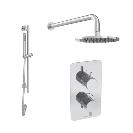 Saneux COS 2 way shower kit - w/ Slim Handset and Slider Rail and Shower Head - Knurled - Chrome